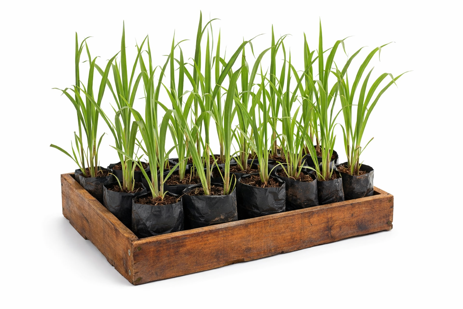 Imagem Ilustrativa: As mudas são enviadas com o torrão envolto em saquinho plástico e acondicionadas em caixa. A quantidade de hastes pode variar.