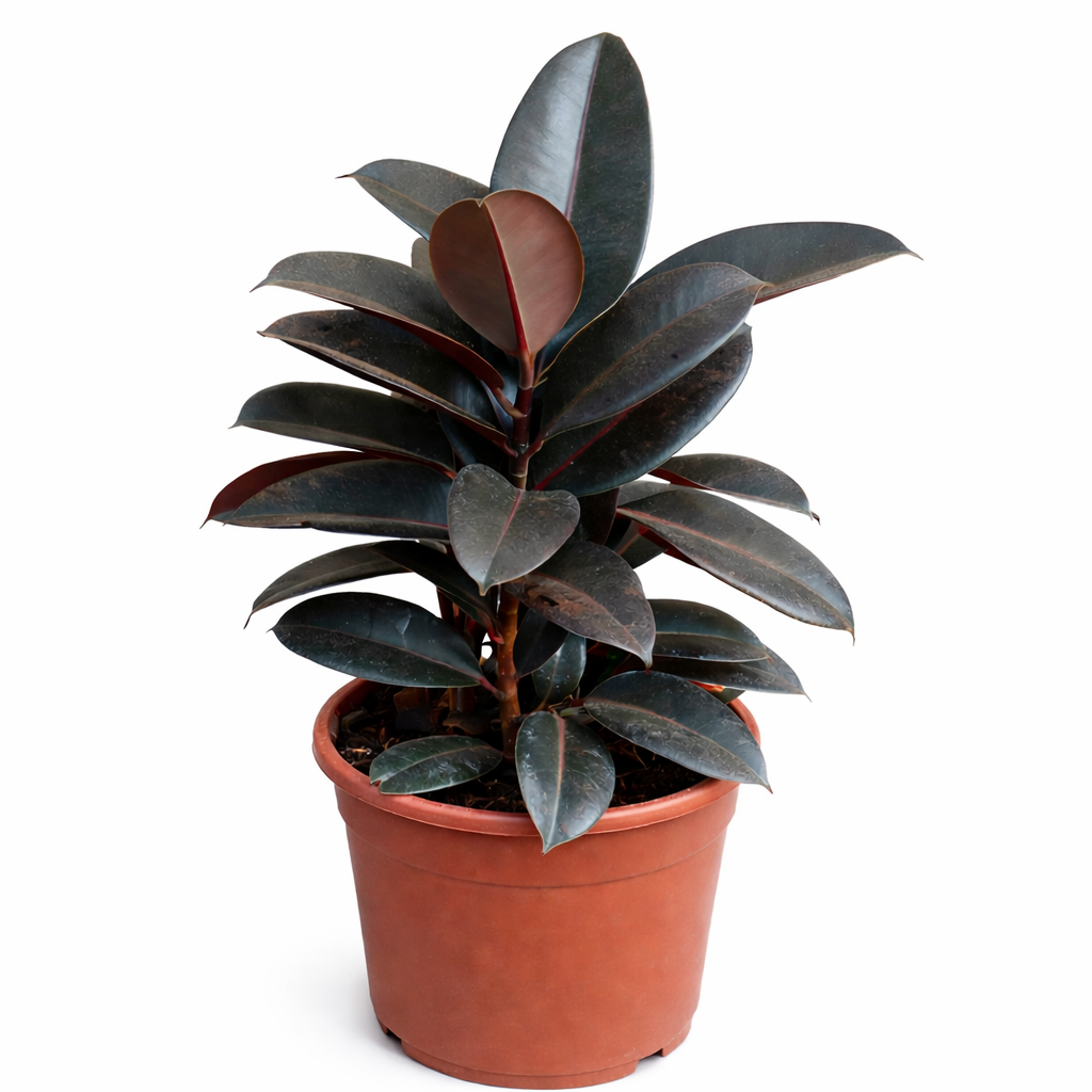 O Ficus Elástica Rubro é uma planta ornamental elegante, com folhas largas e brilhantes de tonalidade verde-escura com nuances avermelhadas, que trazem sofisticação a qualquer ambiente. Ideal para interiores bem iluminados, é uma espécie resistente, fácil de cuidar e perfeita para quem deseja um toque moderno na decoração.